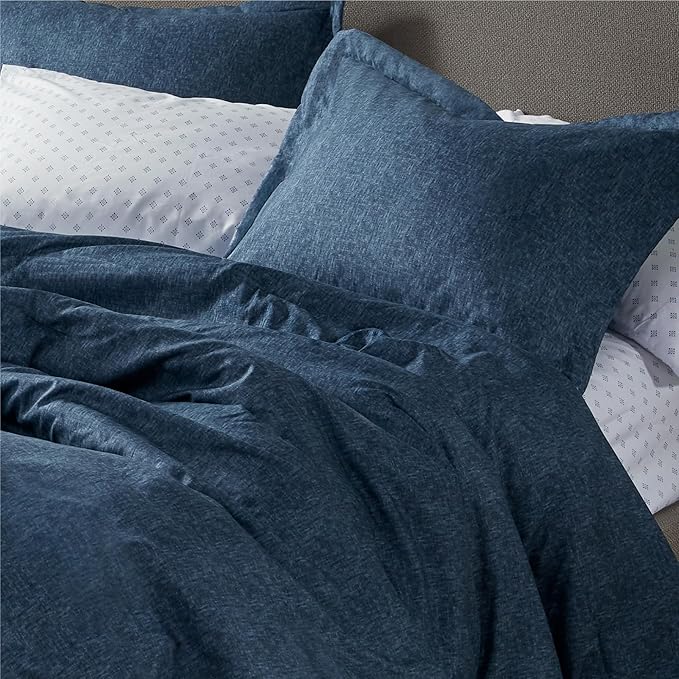 About This Modern Design: This neutral solid bedding comforter set with the printed chambray-like design adds a denim touch of...