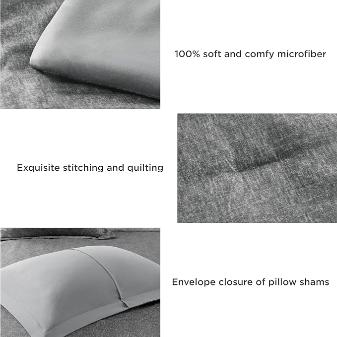 About This Modern Design: This neutral solid bedding comforter set with the printed chambray-like design adds a denim touch of...