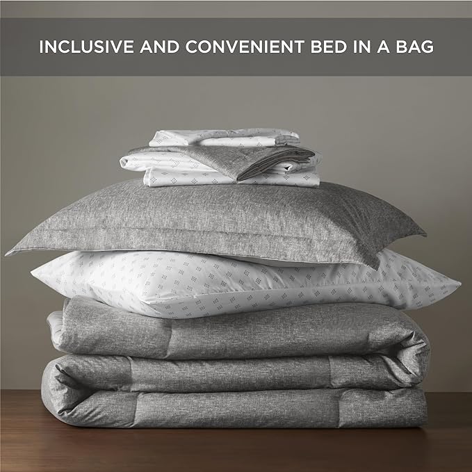 7-Piece King Size Comforter Set with Sheets, Modern Chambray Printed Bed in a Bag Bedding Sets, Grey, includes Fitted Sheet, Flat Sheet, Comforter, 2 Pillowcases & 2 Shams