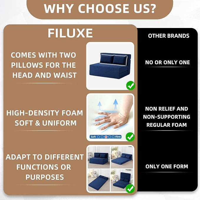 About This 【Premium Fabric & Foam】This foldable sleeper sofa features High-Density foam, is soft and uniform, rebounds quickly, and is...