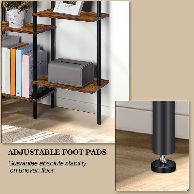 4-Tier Bookshelf,Small Triple Wide Bookcase for Books,CDs,Movies,Display Shelf with 10 Open Shelves for Living Room,Home Office,Balcony,Rustic Brown