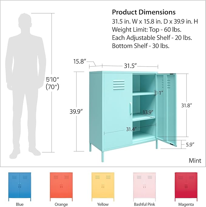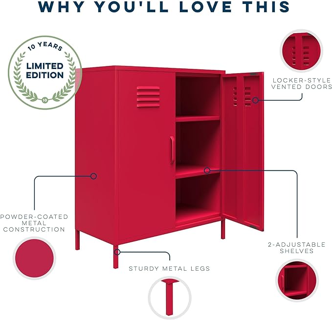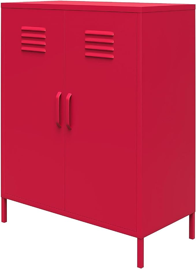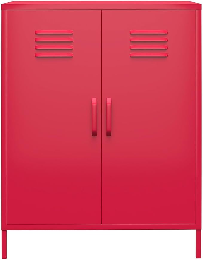 Novogratz Cache 2 Door Metal Locker-Style Storage Accent Cabinet, Magenta