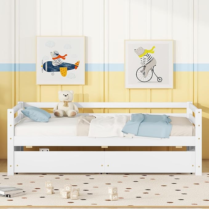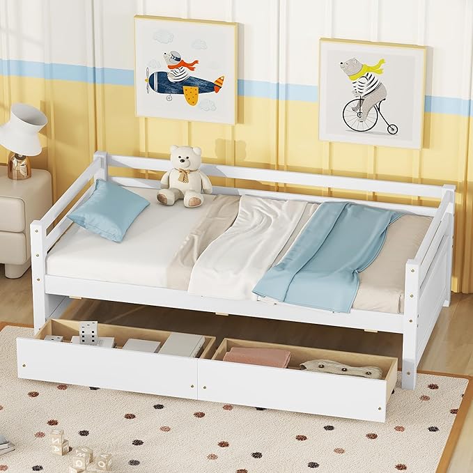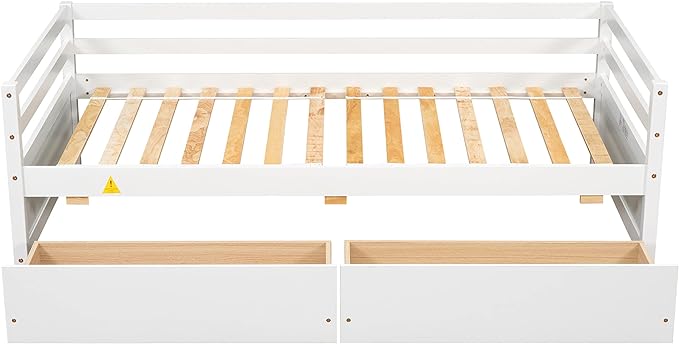 Bellemave Daybed with Two Storage Drawers Wood Day Bed, Sofa Bed Frame with Storage Drawers Daybed Couch with Storage Bed for Living Room Bedroom (White)…