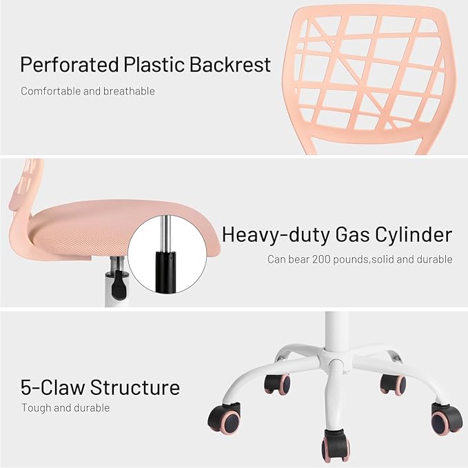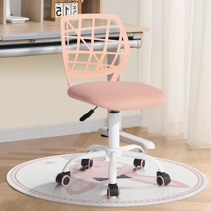 FurnitureR Kids Desk Chair, Small Office Chair Armless Adjsutable Swivel Task Chair with Soft Cushion for Study Kids Teens Child, Orange Rose