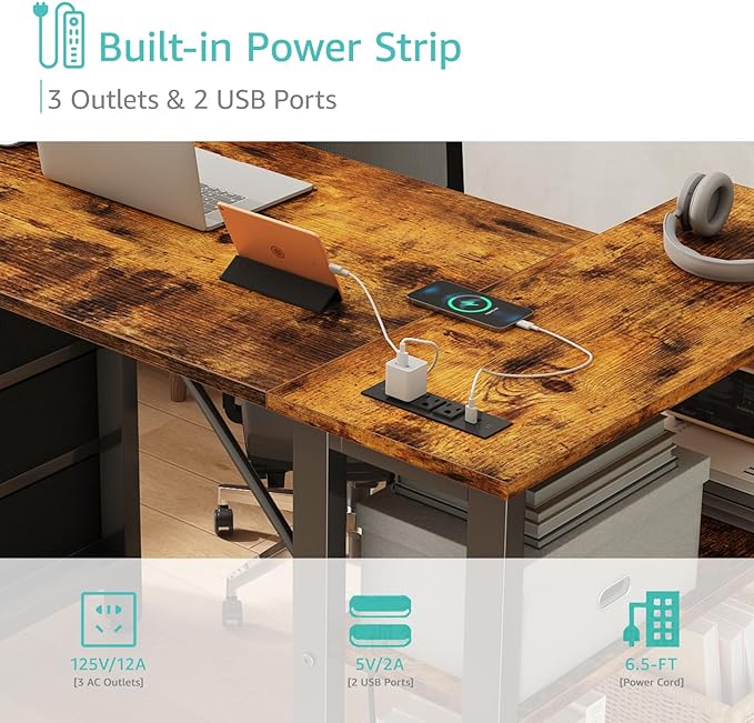 About This Safety Multifunctional Power Strip: The computer desk includes a built-in power strip with 3 power outlets & 2...