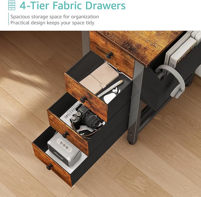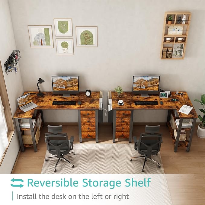 Lufeiya L Shaped Desk with Drawers & Storage Shelves, 47 Inch Corner Computer Desk with Power Outlet for Home Office Bedroom, L-Shaped Gaming PC Desks with Fabric Drawer, Rustic Brown