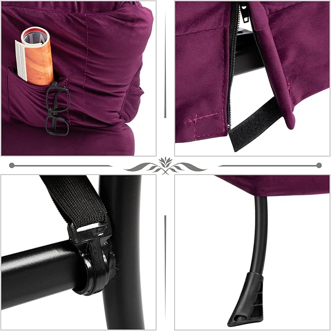 AbocoFur Modern Fabric Lazy Chair and Folding Footrest Stool Set, Accent Contemporary Lounge Chair and Portable Ottoman, Steel Frame Leisure Sofa Chair and Metal Cotton Footstool, Deep Purple