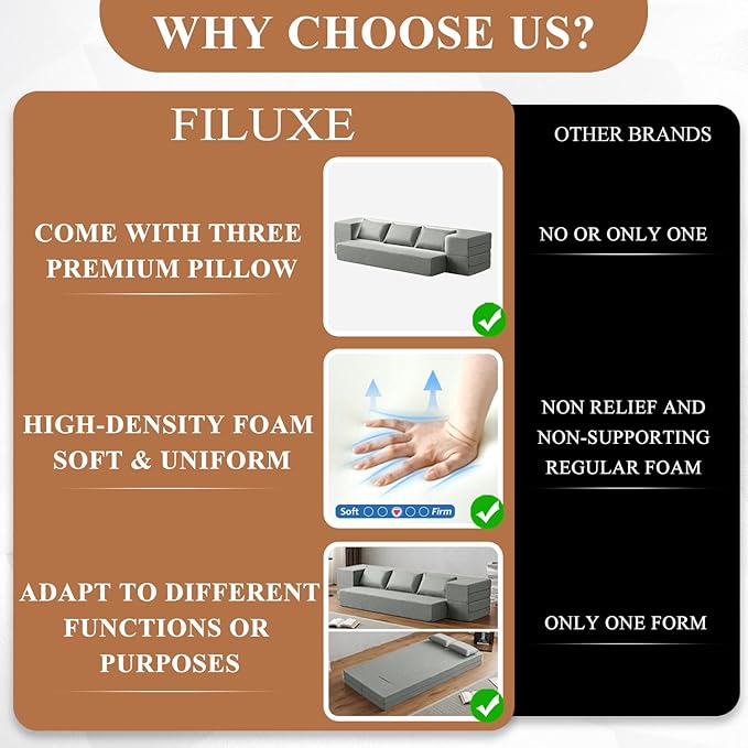 About This 【Premium Fabric & Foam】This foldable sleeper sofa features High-Density foam, is soft and uniform, rebounds quickly, and is...