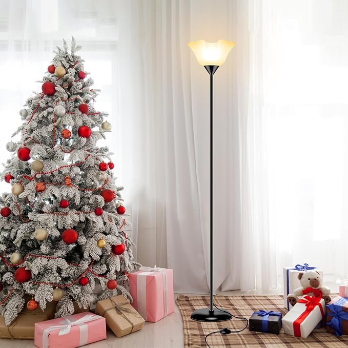 Floor Lamp Led Standing Lamps 74'' Tall Torchiere Floor Lamp with White Plastic Shade Black Modern Stand Lamps for Living Room Bedroom Classroom Dorm Office, E26 Bulb Included