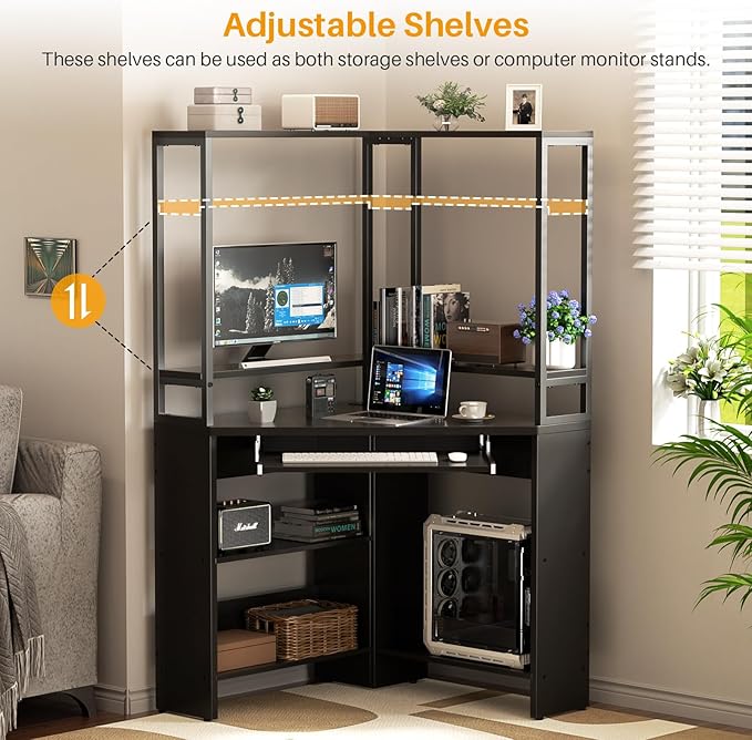 About This 【Corner Desk with Hutch】Cyclysio corner desk with hutch is manufactured by heavy industry, consisting of a total of...