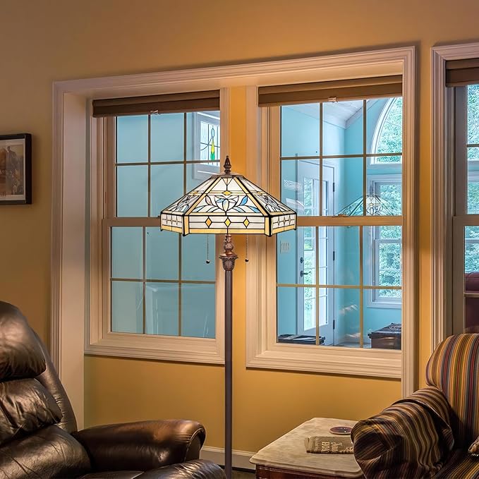 Capulina Tiffany Floor Lamp 2-Light 16X16X63 Inches Mission Hexagon Style Stained Glass Standing Reading Light for Living Room Bedroom Home Office