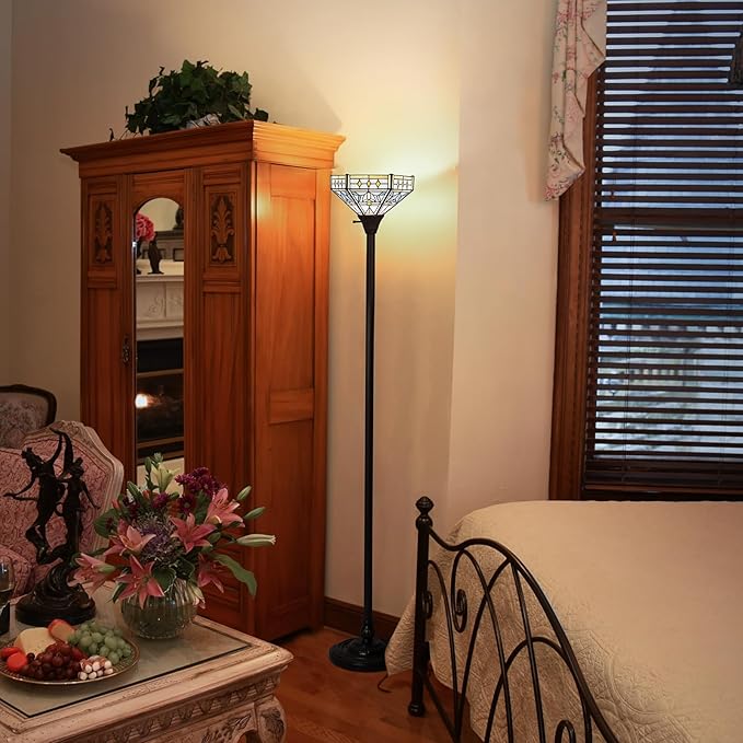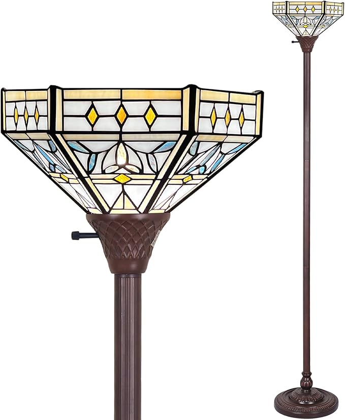 Capulina Tiffany Torchiere Floor Lamp 70 Inches Tall Industrial Dark Bronze Pole Mission Hexagon Virgin Style Stained Glass Torch Standing Light Decor for Living Room Bedroom Home Office