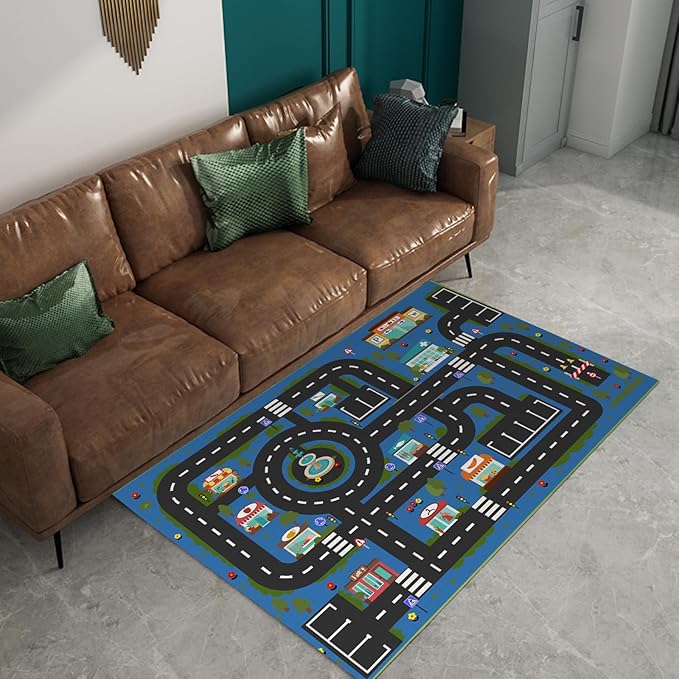Analog ABC Kids Rug Playroom Car Rug Play Mat City Life Road Rug for Cars Fun City Map for Carpet for Bedroom Boys (55 * 82 inches, Hope City)
