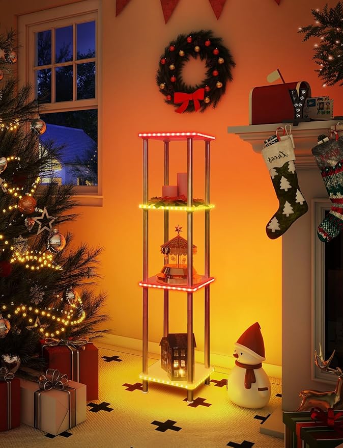 About This 【Multi-function】Multi-purpose floor lamps for living room, with RGB color changing function, 5 floors of spacious storage space, stylish...