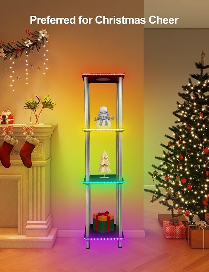 About This 【Multi-function】Multi-purpose floor lamps for living room, with RGB color changing function, 5 floors of spacious storage space, stylish...