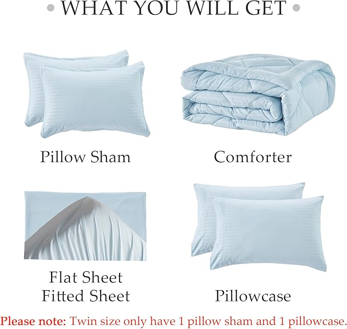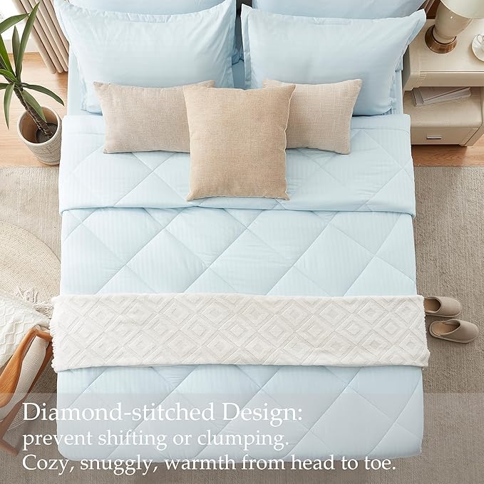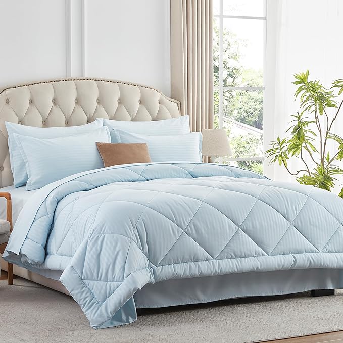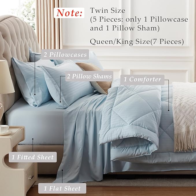 NexHome Light Blue King Bed in a Bag 7-Pieces Comforter Sets with Comforter and Sheets Soft All Season Bedding Sets with Comforter, Pillow Shams, Flat Sheet, Fitted Sheet and Pillowcases