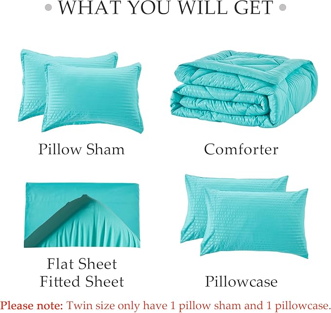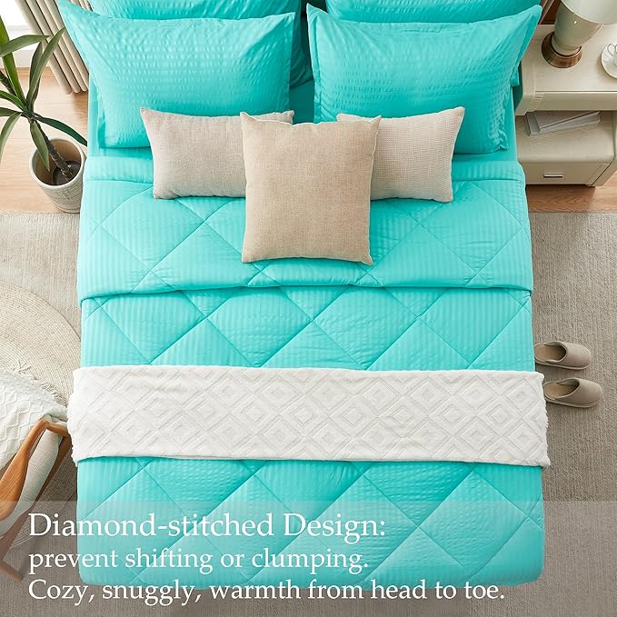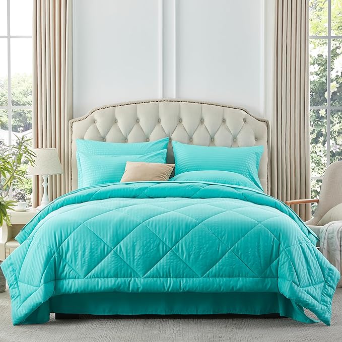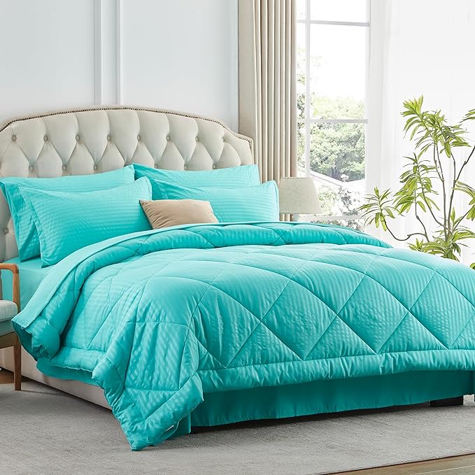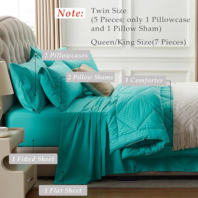 NexHome Turquoise King Bed in a Bag 7-Pieces Comforter Sets with Comforter and Sheets Soft All Season Bedding Sets with Comforter, Pillow Shams, Flat Sheet, Fitted Sheet and Pillowcases