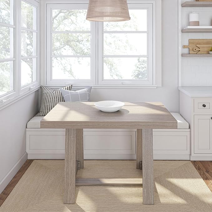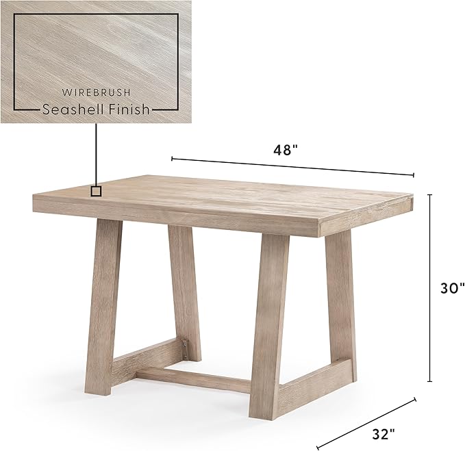 Plank+Beam 48 Inch Farmhouse Dining Table, Rustic Solid Wood Kitchen Table, Dinner Table for Dining Room, Home Office Furniture, Seashell Wirebrush