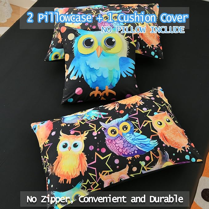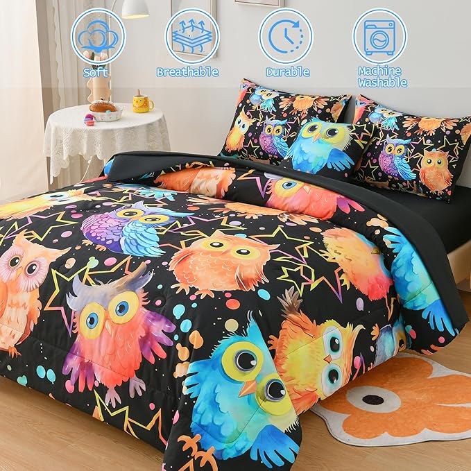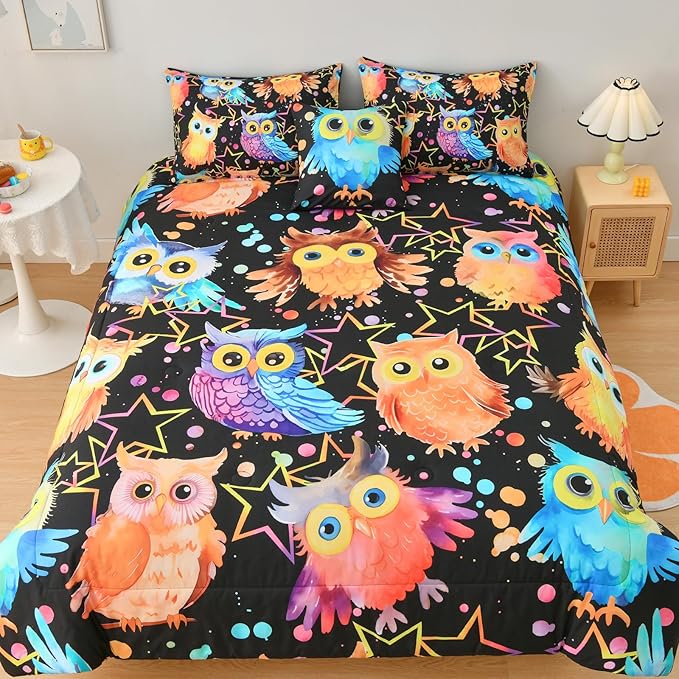 About This 【Cute Owl Theme Design】This adorable owl comforter set combines elements of cute breeds of owls and starry, using...