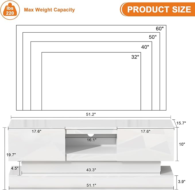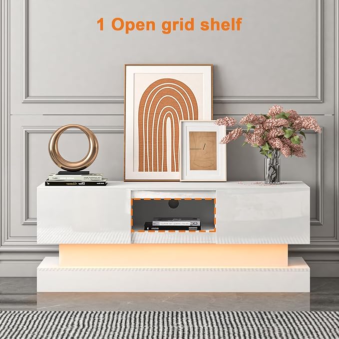 About This 🌈Eye-catching Design - This glossy tv stand white features a matte textured body and high gloss front with...
