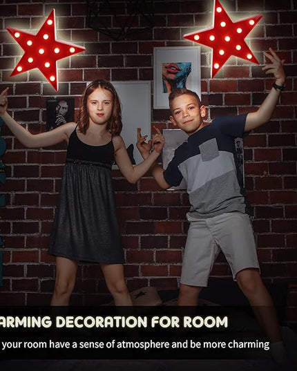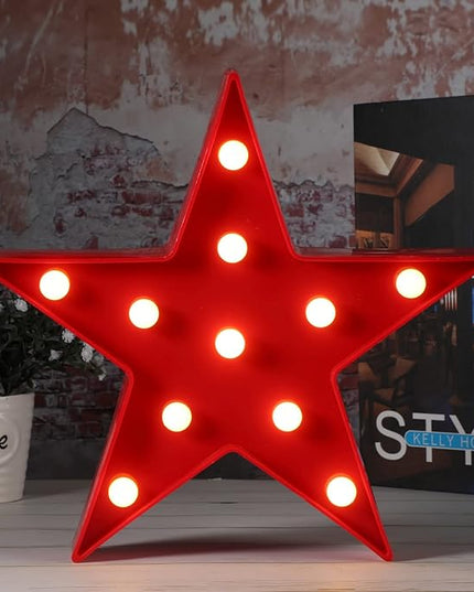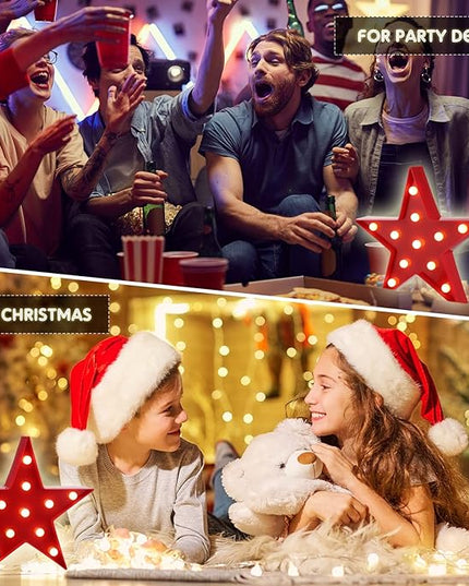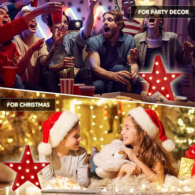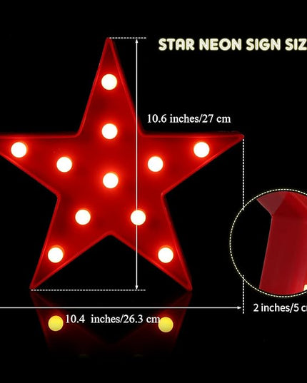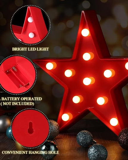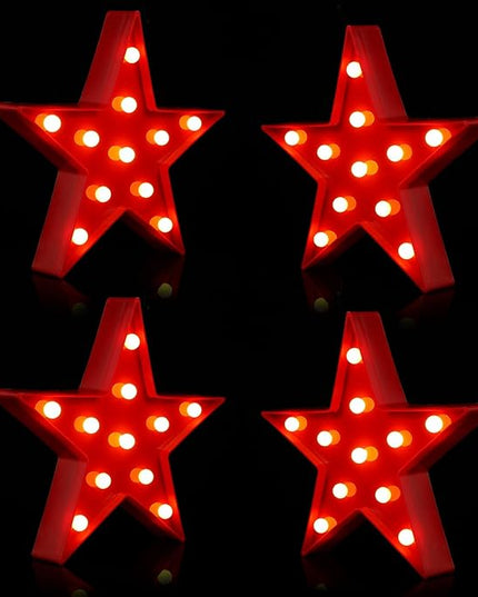 4 Pcs Star Plastic Night Light Battery Operated LED Marquee Star Sign Star Shaped Party Movie Theater Decor Room Wall Lamp for Kids Baby Child Girl Gifts, Birthday Party Christmas Home Bar (Red)
