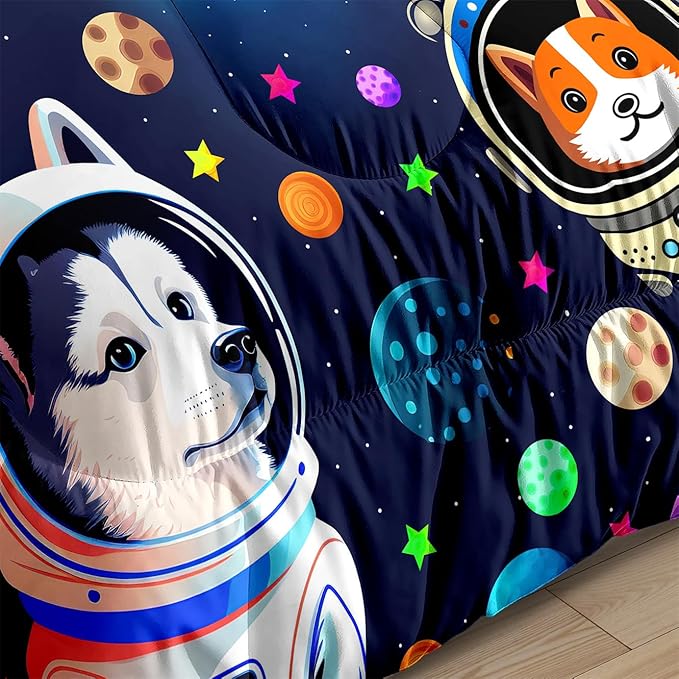 Dogs Twin Comforter Set for Boys - 2Pcs Lovely Pets Animals Theme Bedding Set for Boys Bedroom Kids Room Decor Cute Corgi Husky Alaska Pattern Soft Comforter with 1 Pillowcase for All Season