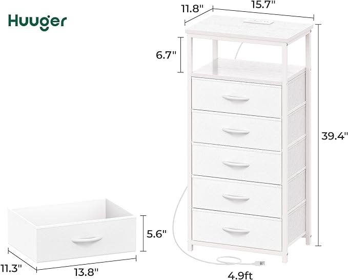About This 【5 Storage Drawers】5 fabric drawers of the bedroom dresser offer capacious space for perfectly storing your books, clothing,...