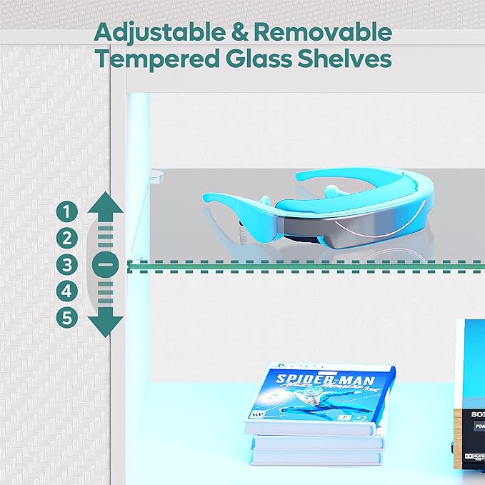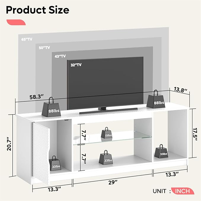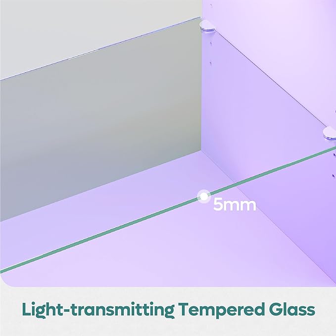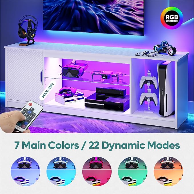 Bestier Gaming TV Stand with Removable Glass Shelves for 55/60/65 Inch TV,Led Entertainment Center & 22 Dynamic RGB Modes for PS5 PS4,Modern TV Console for Living Room Bedroom Carbon Fiber White