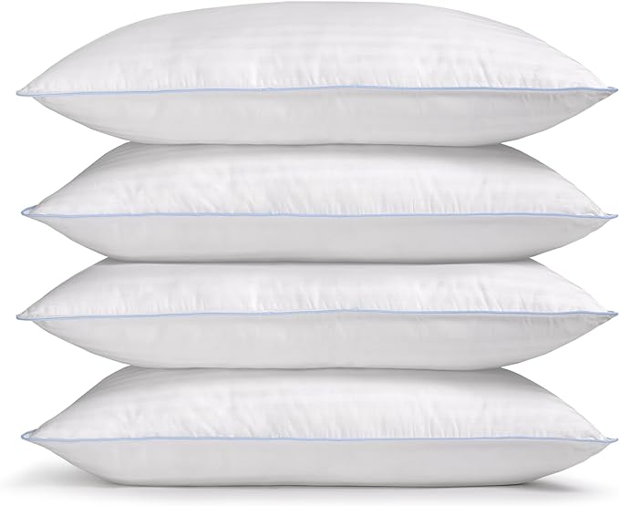 eLuxurySupply 4-Pack Premium Bed Pillows - Medium Density and Medium Loft Ideal for Back and Side Sleepers - 100% Cotton Casing - 20"X28" Standard/Queen Size