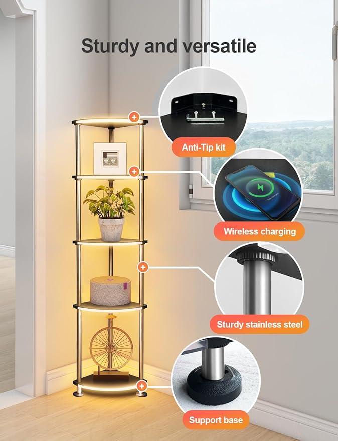 About This 【5 Adjustable Shelves for Storage】This lamp with shelves features 5 adjustable tiers of storage space, allowing you to...