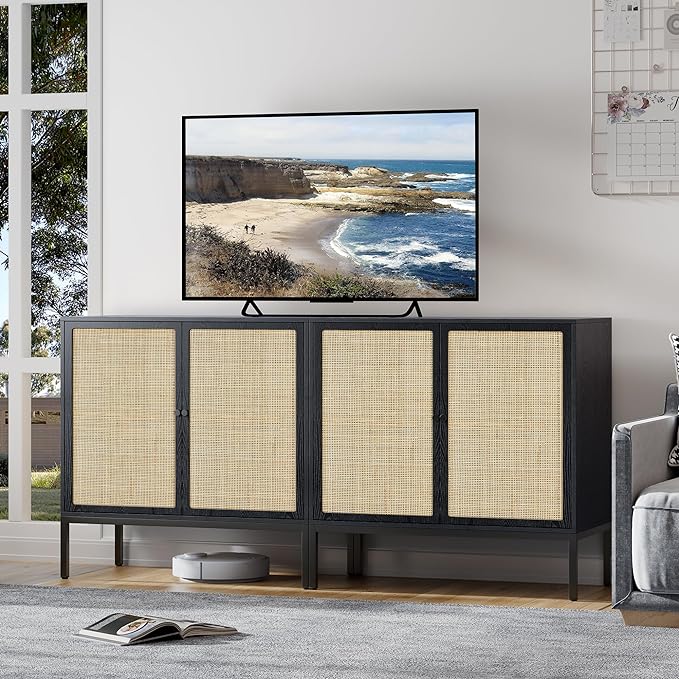 About This MODERN AND CLASSIC: The buffet table are paired with natural rattan, handmade craftsmanship and bohemian style, The clean...