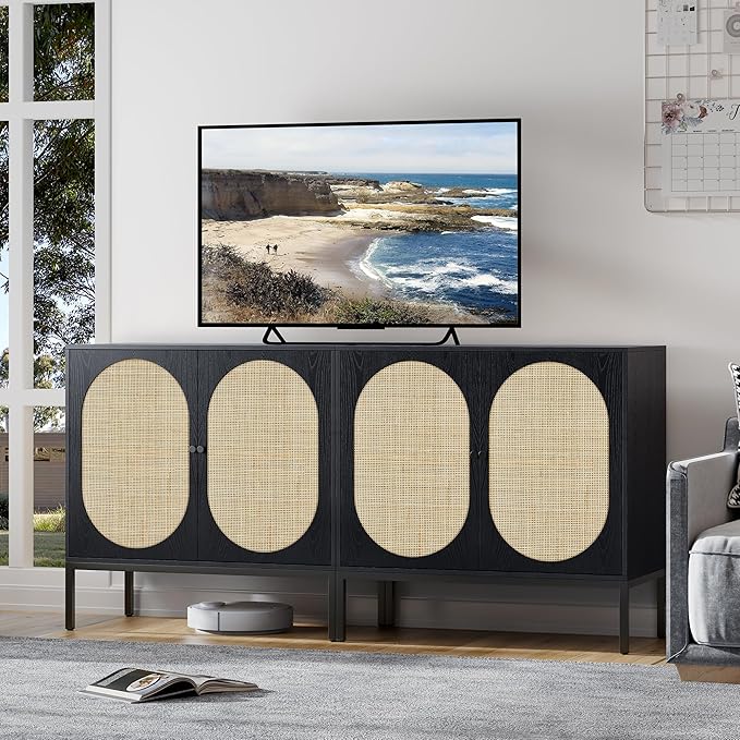 About This MODERN AND CLASSIC: The buffet table are paired with natural rattan, handmade craftsmanship and bohemian style, The clean...