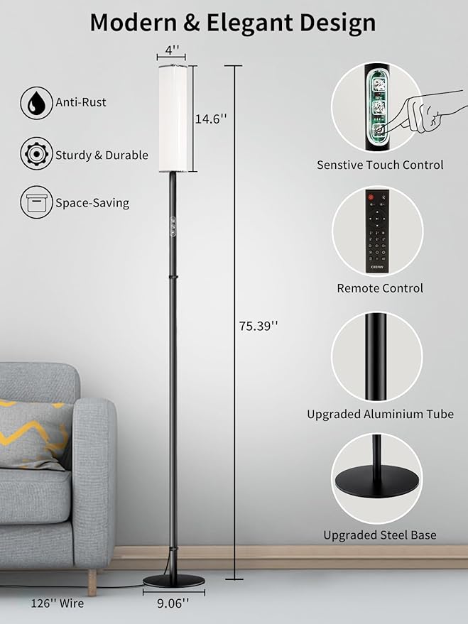 chiphy RGB Floor Lamp, 75'' Color Changing Floor Lamp, LED Cylinder Floor Lamp Alexa Lamp APP Control, Music Sync DIY Mode, 18W 1600 Lumen Modern Lamp for Living Room Bedroom Gaming Room Party