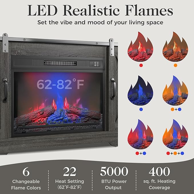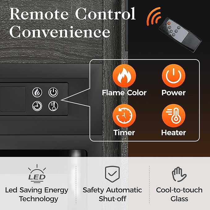 About This Maximize Storage with Our Fireplace TV Stand: The overall size is 58" W x 34" H x 16"D....