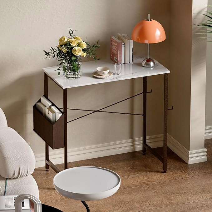 Pamray 32 Inch Computer Desk Small Spaces Desk with Storage Bag for Bedroom Writing and Home Office Work Small Study Desk Table White Marble