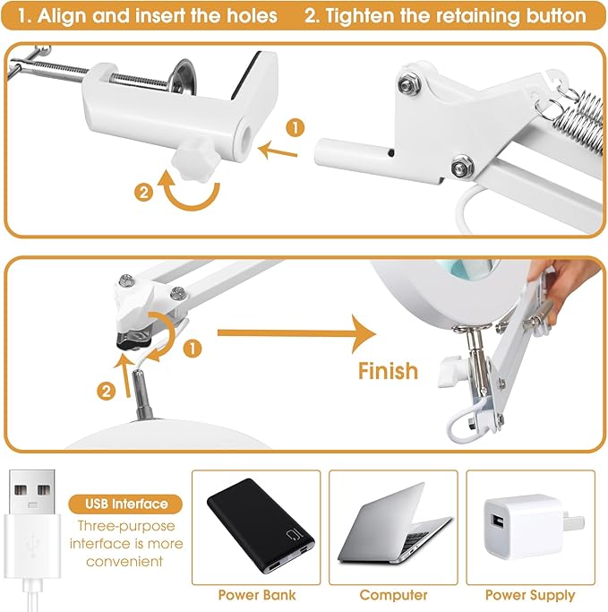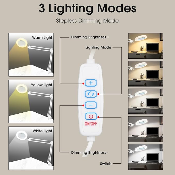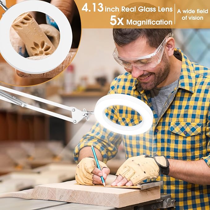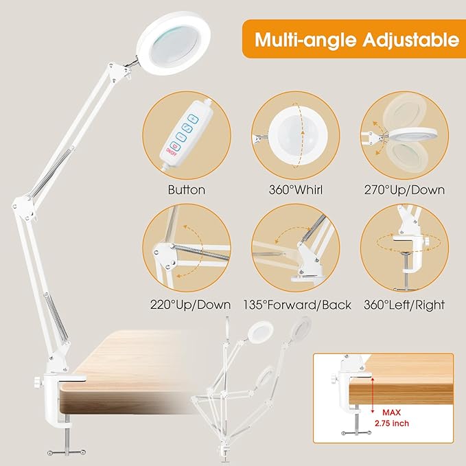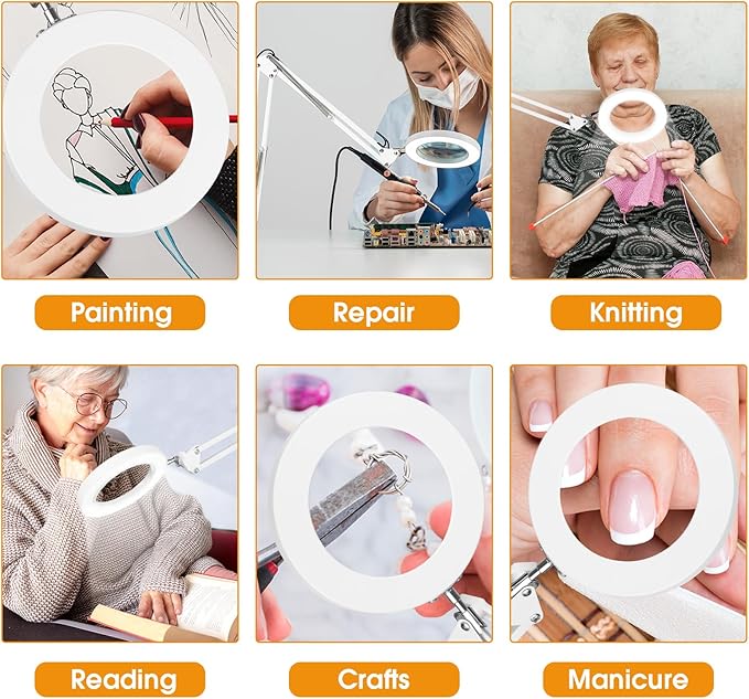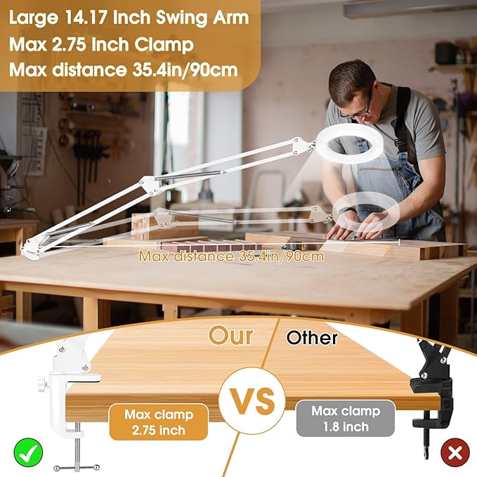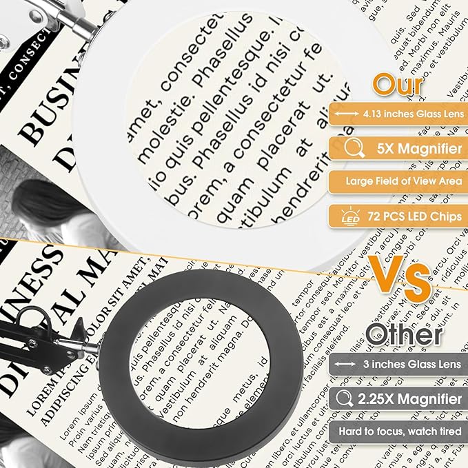 About This 【Extra-Long Adjustable Swing Arm】Our large lighted magnifying glass hands-free has two 14.13-inch extra-long metal swing arms, which can...