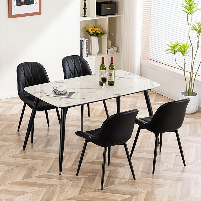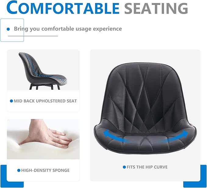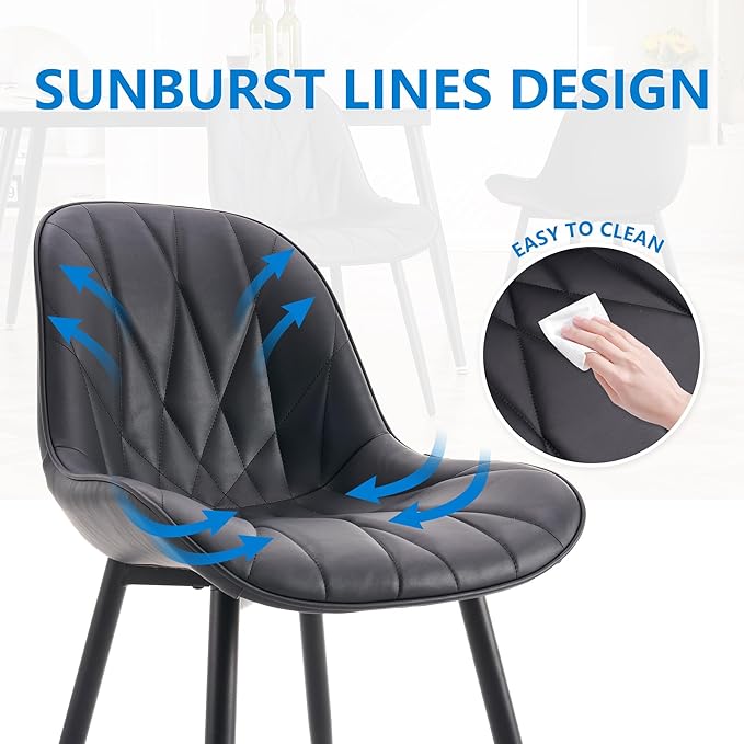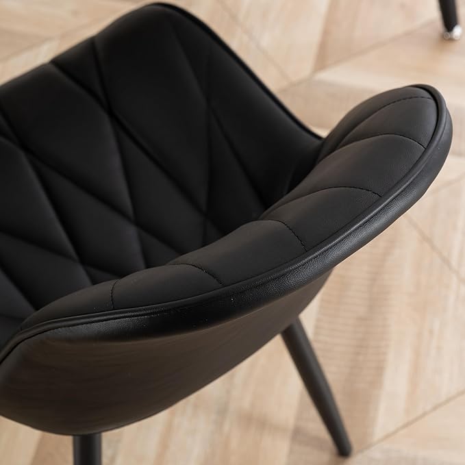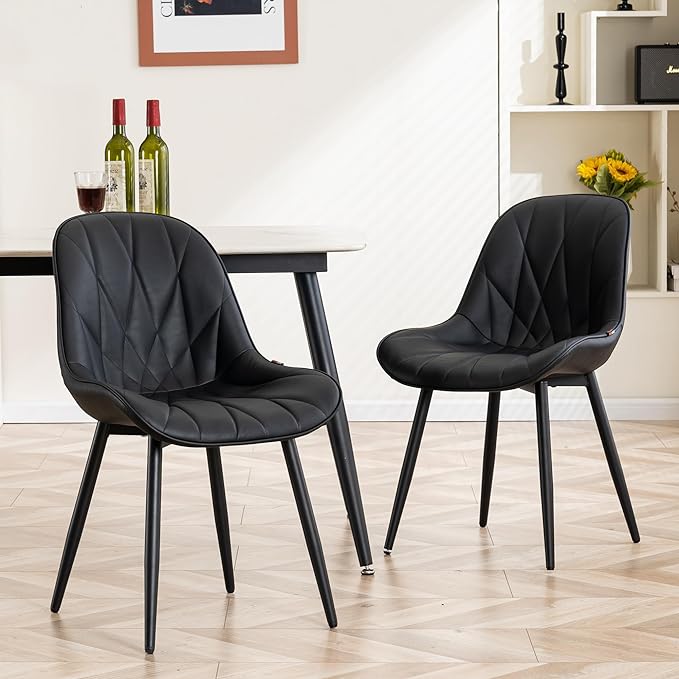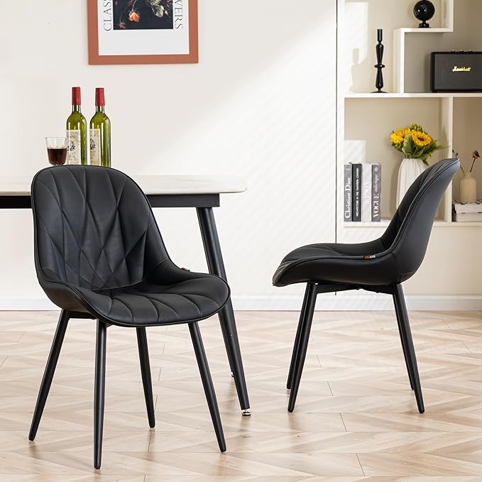 YOUNIKE Dining Chairs Set of 2, Black Modern Kitchen Chairs with Adjustable Feet, Mid Century Faux Leather Upholstered Dining Room Chairs, 300LBS Support Elegant Dinning Chairs Side Chairs