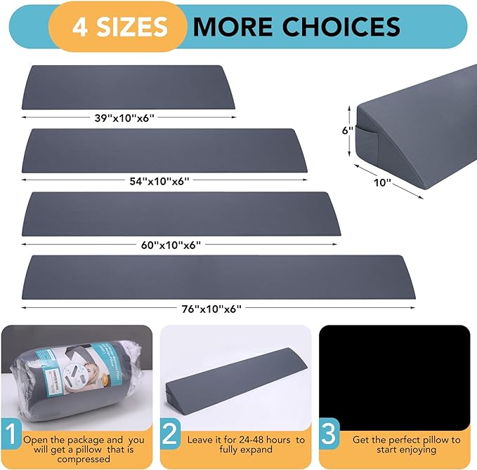About This Multi-purpose Wedge Pillow: Our bed wedge pillow fills the gap maximum 6 inches between the headboard and the...