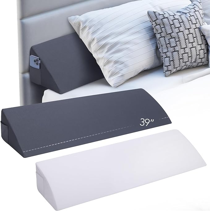Twin Size (39"x10"x6") Bed Wedge Pillow, Headboard Pillow Wedge, Mattress Wedge,Bed Gap Filler, Memory Foam Bed Wedge with 2 Removable Washable Covers, Gray/White