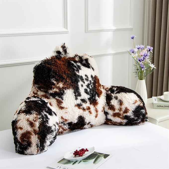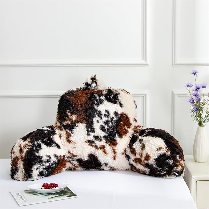 Aimuan Reading Pillow Bed Rest Wedge Backrest Pillow with Arms Back Support for Sitting Up in Bed Cushion Incline Rest Sleeping Snoring Pillow, Coffee-black, Standard