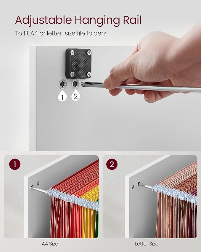 VASAGLE 3-Drawer Vertical File Cabinet, Filing Cabinet for Home Office, Printer Stand, with 3 Lockable Drawers, Adjustable Hanging Rail, for A4 and Letter-Size Files, Cloud White UOFC055W14