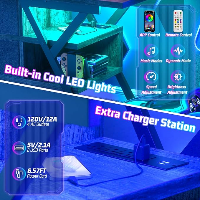 TV Stand for 55''/65'' TV - LED TV Stands with Power Outlets, TV Entertainment Center with Storage, Modern Gaming TV Stand with Drawers for Bedroom, Entertainment Stand for Living Room, Gray & Black