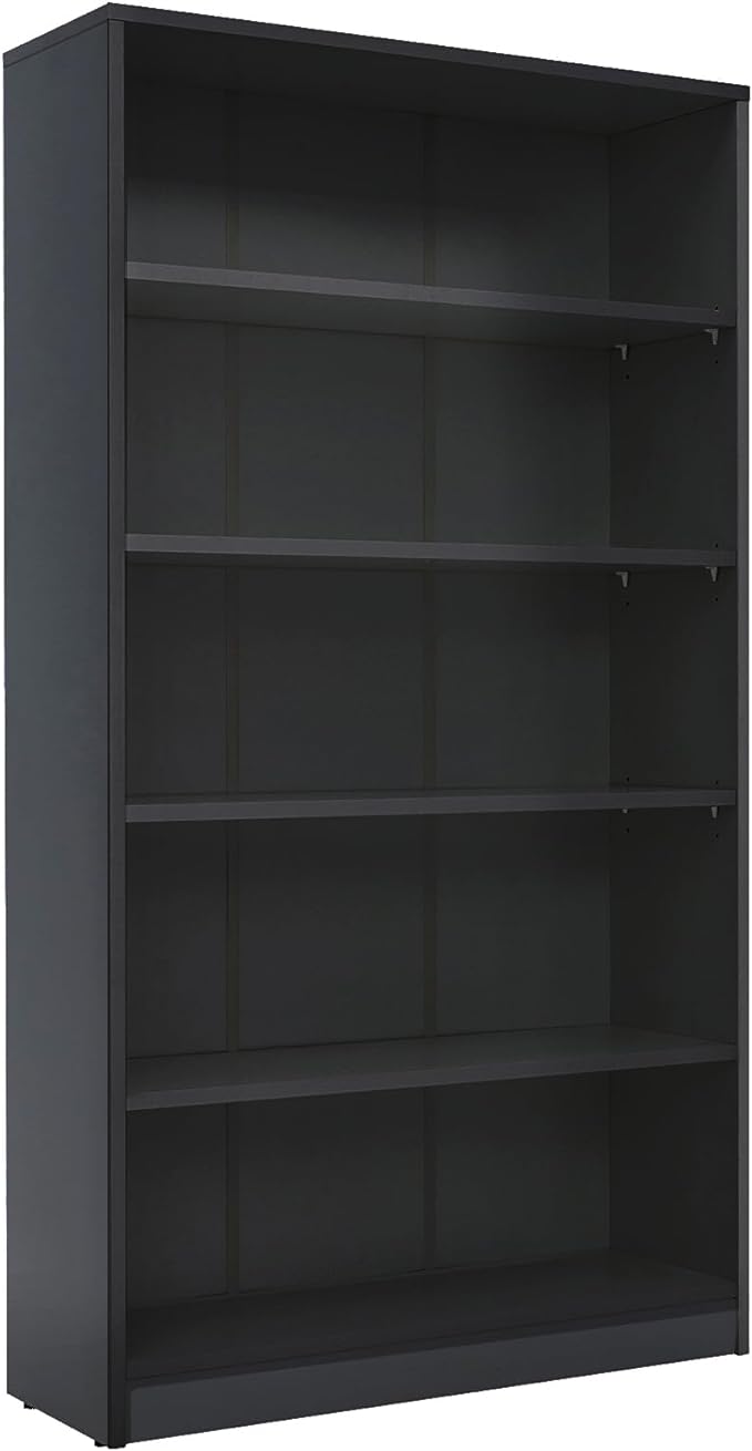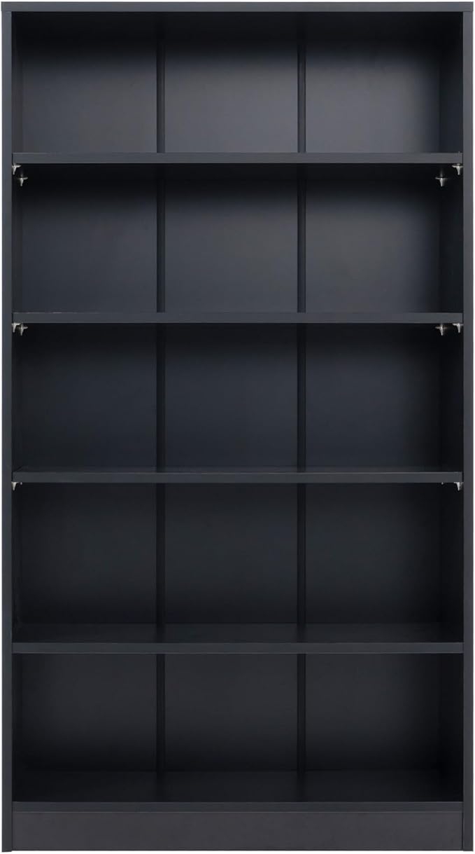 STARY 5 Shelf Black Bookcase 60 inch Tall Wood Bookshelf for Bedroom