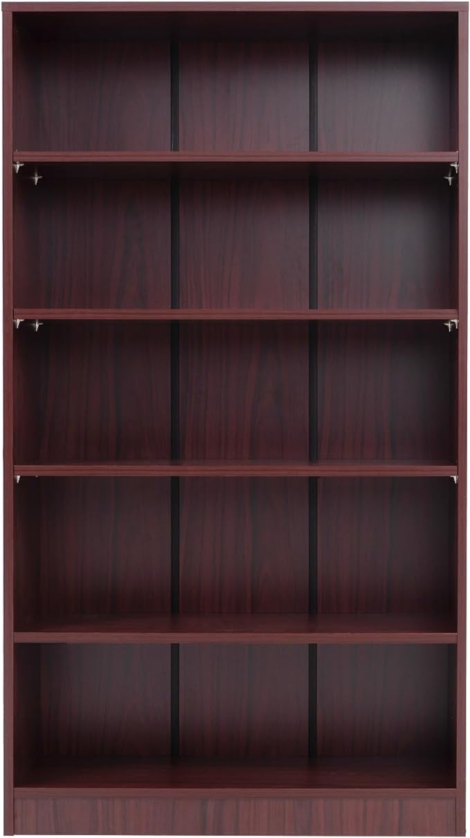 STARY 5 Shelf Mahogany Bookcase 60 inch Tall Wood Bookshelf for Bedroom