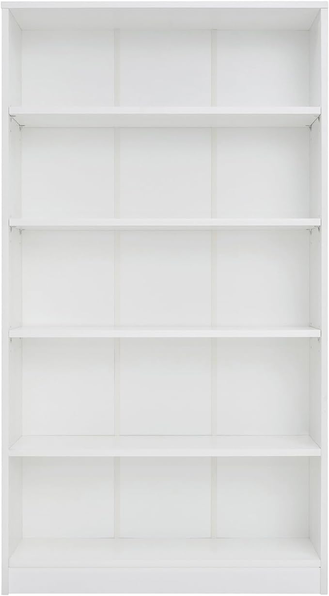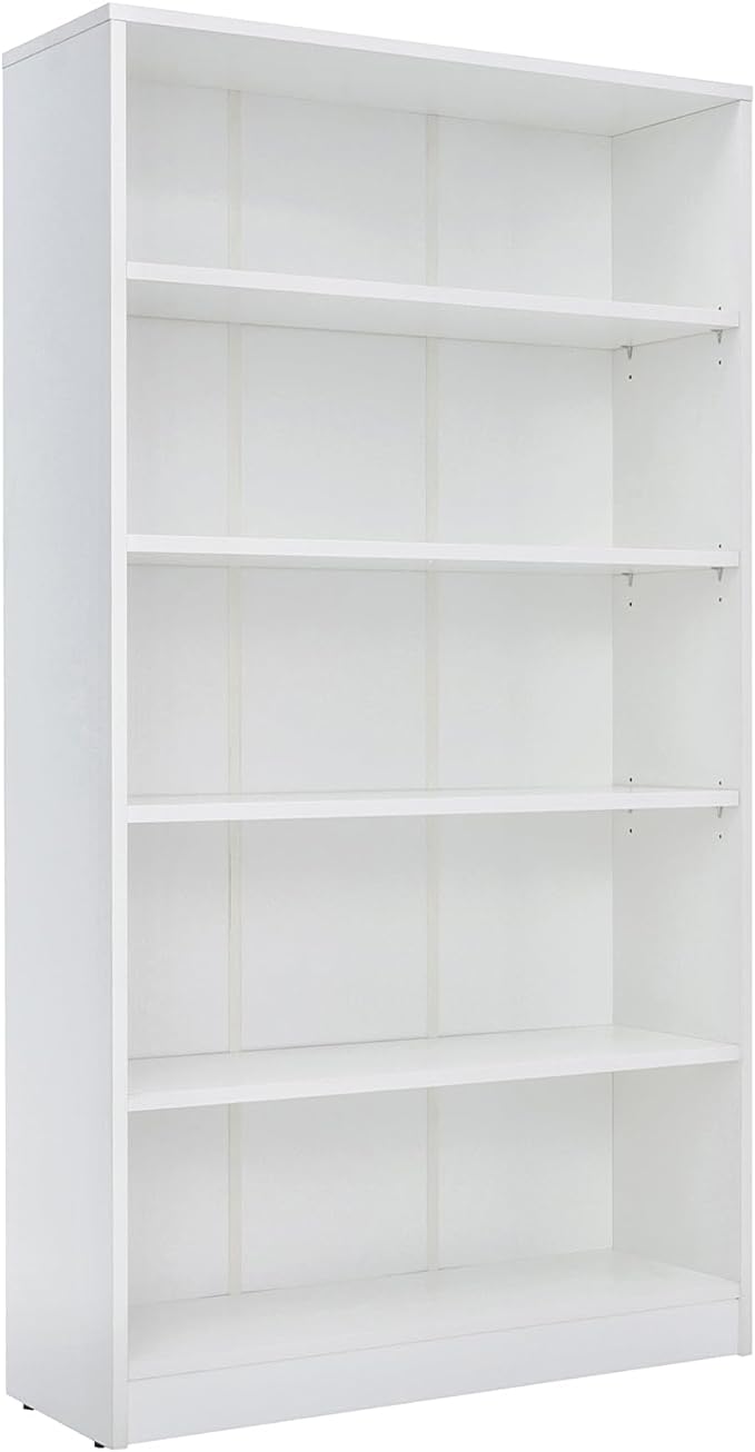STARY 5 Shelf White Bookcase 60 inch Tall Wood Bookshelf for Bedroom