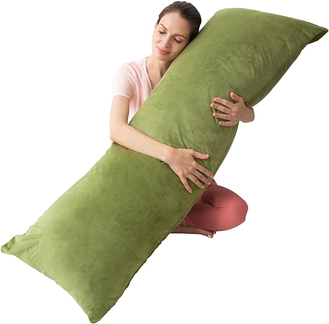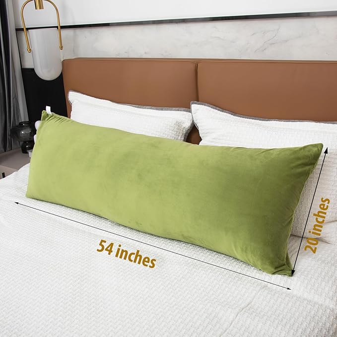 Body Pillows for Adults, Long Pillow for Bed, Firm Large Body Pillow with Velvet Cover for Side Sleeper, 20x54 Inches (Green)