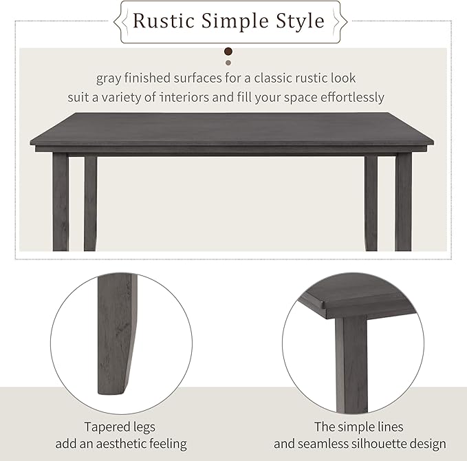 Kitchen Room Table and Chairs with Bench, Rustic Wood Dining Set, Set of 6, Gray