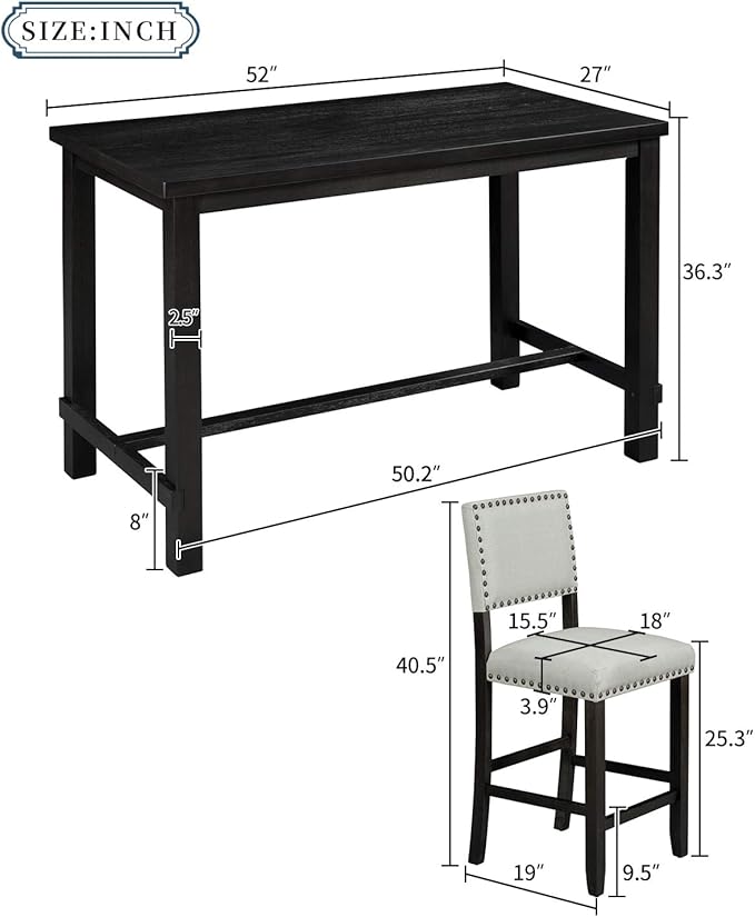 Kitchen 5-Piece Counter Height Dining Set, Classic Elegant Table and 4 Chairs in Espresso and Beige