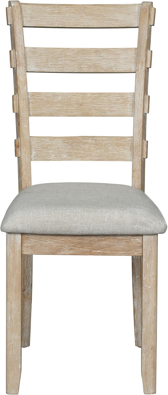Kitchen Chair 6-Piece Rubber Dining Table Set with Beautiful Grain Pattern Tabletop Solid Veneer and Soft Cushion, Natural Wood Wash, Onesize
