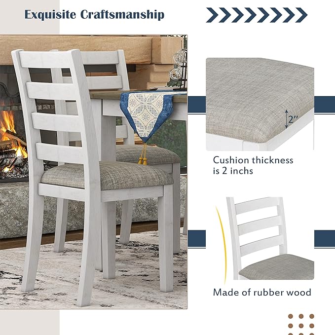 Kitchen Rustic Style 6-Piece Dining Room Table Set with 4 Upholstered Chairs & a Bench, Brown+Whitewash, Onesize